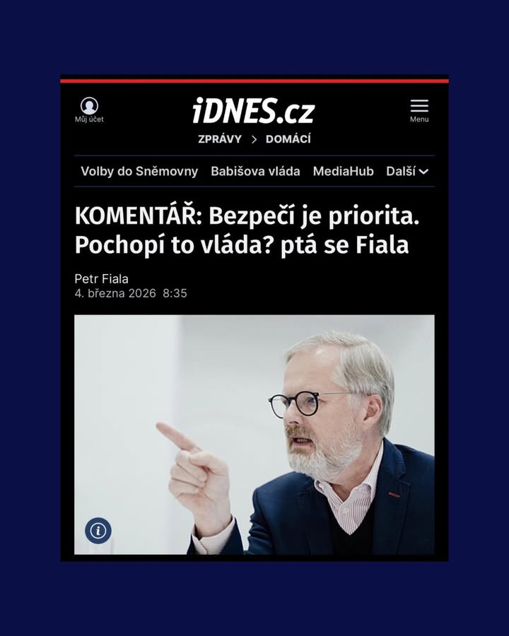 Premiér minulý týden řekl: „Naše priorita je zdraví našich spoluobčanů, aby žili dlouho.“ V dnešním kontextu je ten výrok tak mimo, že okamžitě vzbudil pozornost u spojenců. Za pozornost však stojí i další premiérova slova: „Program válka, Ukrajina, to si pletete s Fialovou vládou. My to nemáme v programovém prohlášení.“ Oba výroky zazněly během jediného týdne. Pak přišel víkend, který připomněl, že realita se neptá, co je napsáno v programovém prohlášení. Stejně jako se neptala mojí vlády v únoru 2022.